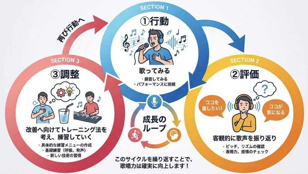 更に、声(歌唱技術)の向上には