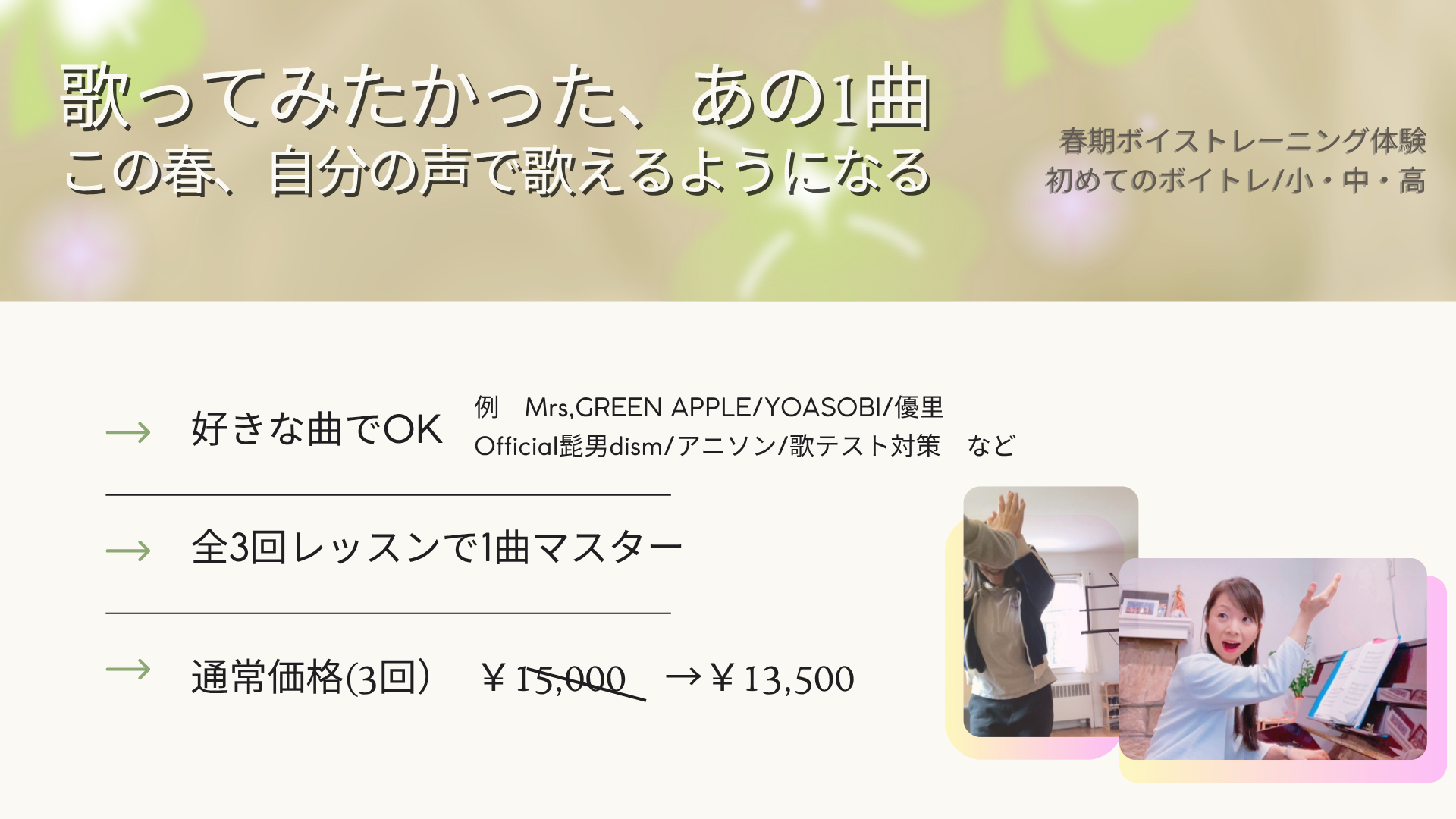 ♦正しい発声法/ボイスチューニングが学べます
